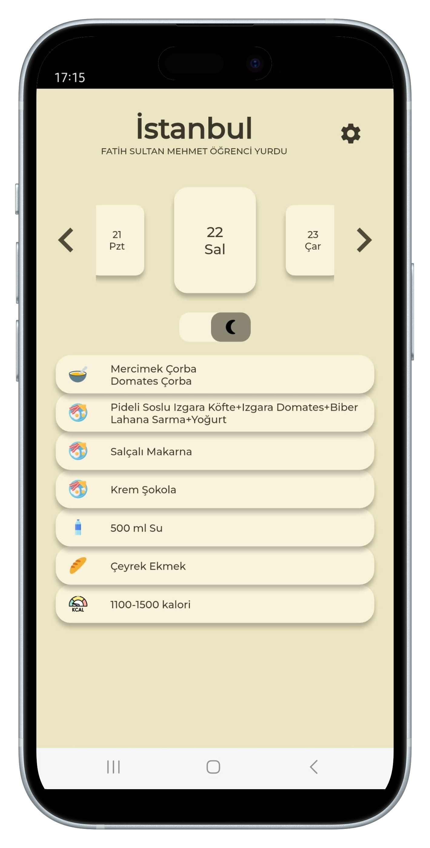 Hangi şehirde ve yurttaysanız ona özel menü bilgisi.