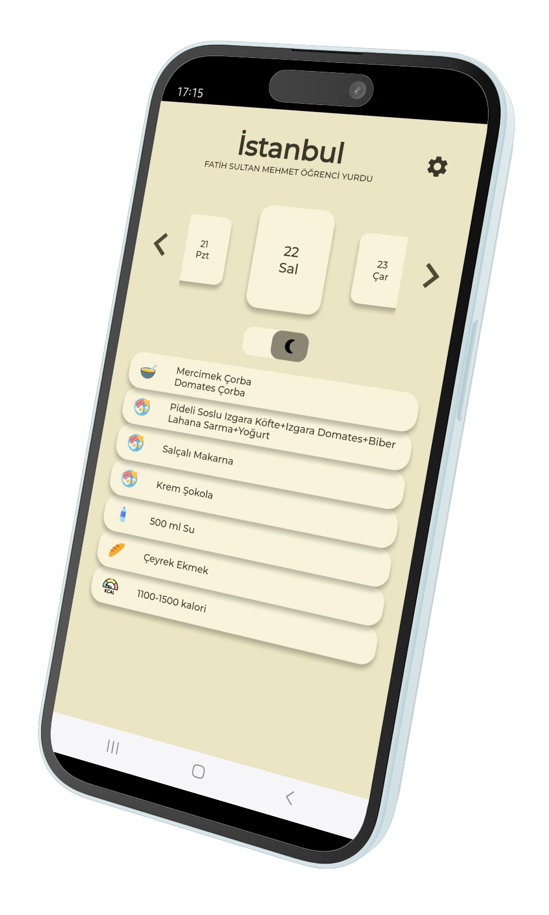 KYK yurtlarında kalan öğrencilerin günlük yemek menüsüne kolayca erişmesini sağlayan bir uygulama.